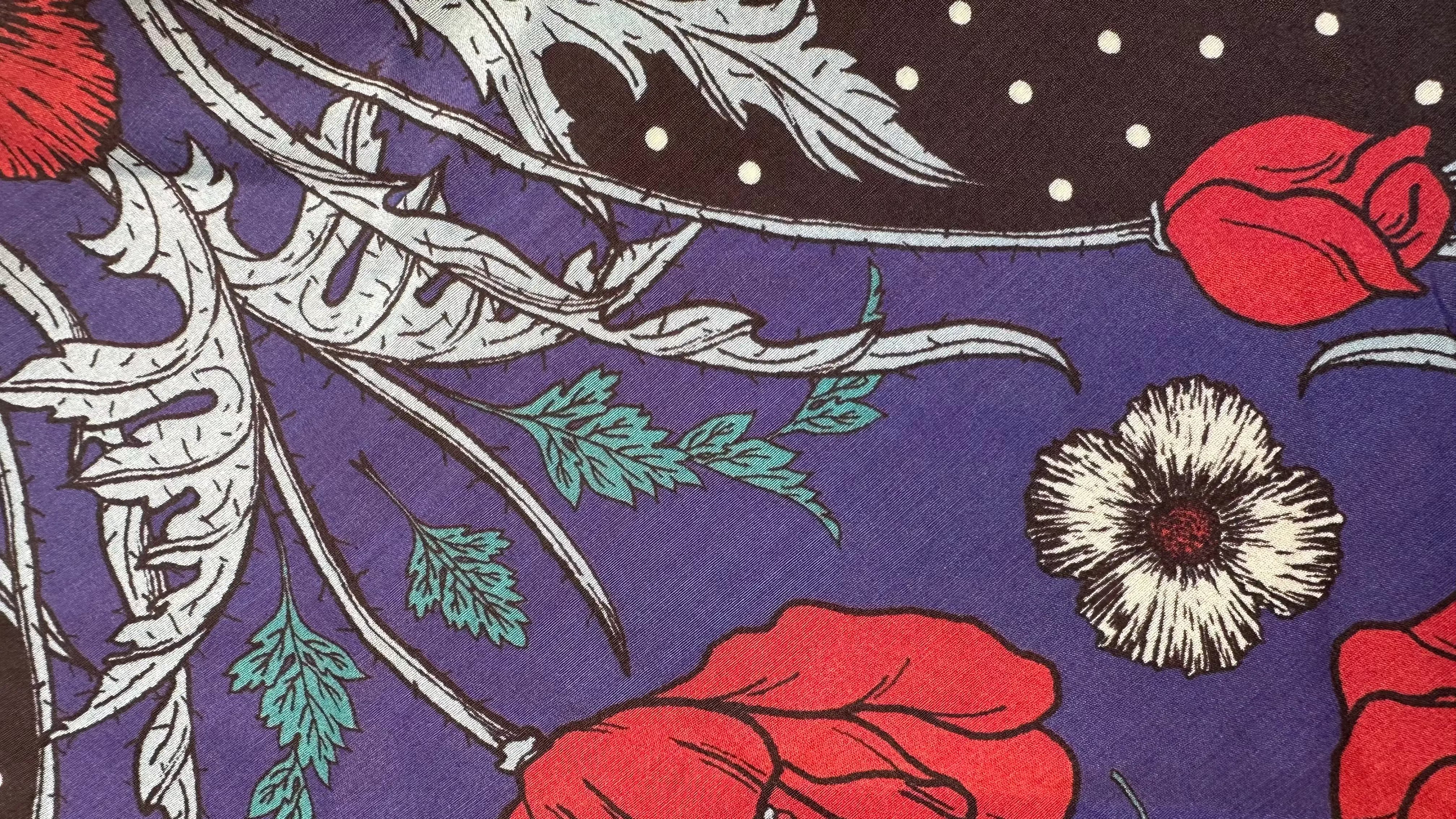 The California Poppy Kerchief is a charming kerchief designed for those who love playful elegance and versatile accessories. Featuring a nostalgic print of vibrant red California poppies set against delicate blue flowers, this kerchief adds a touch of natural beauty and sophistication to any outfit. Its dotted border frames the design perfectly, creating a timeless look that captures the spirit of California’s scenic landscapes.