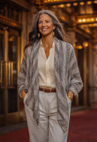 Designed for warm-weather elegance, the Silver Sands Shawl combines breathable comfort with effortless sophistication. Whether styled casually or dressed up, it’s the ultimate lightweight layer for summer living.