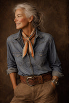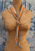 The Four Corners Neck Scarf is a vibrant wearable piece that brings effortless charm to any look. Its soft peach base is paired with coordinating turquoise edges and unique striping—creating a color story that feels sun-washed, fresh, and elevated. Though the palette may seem bold at first glance, this scarf is that perfect little “pop” your outfit didn’t know it needed, especially through spring and summer.
