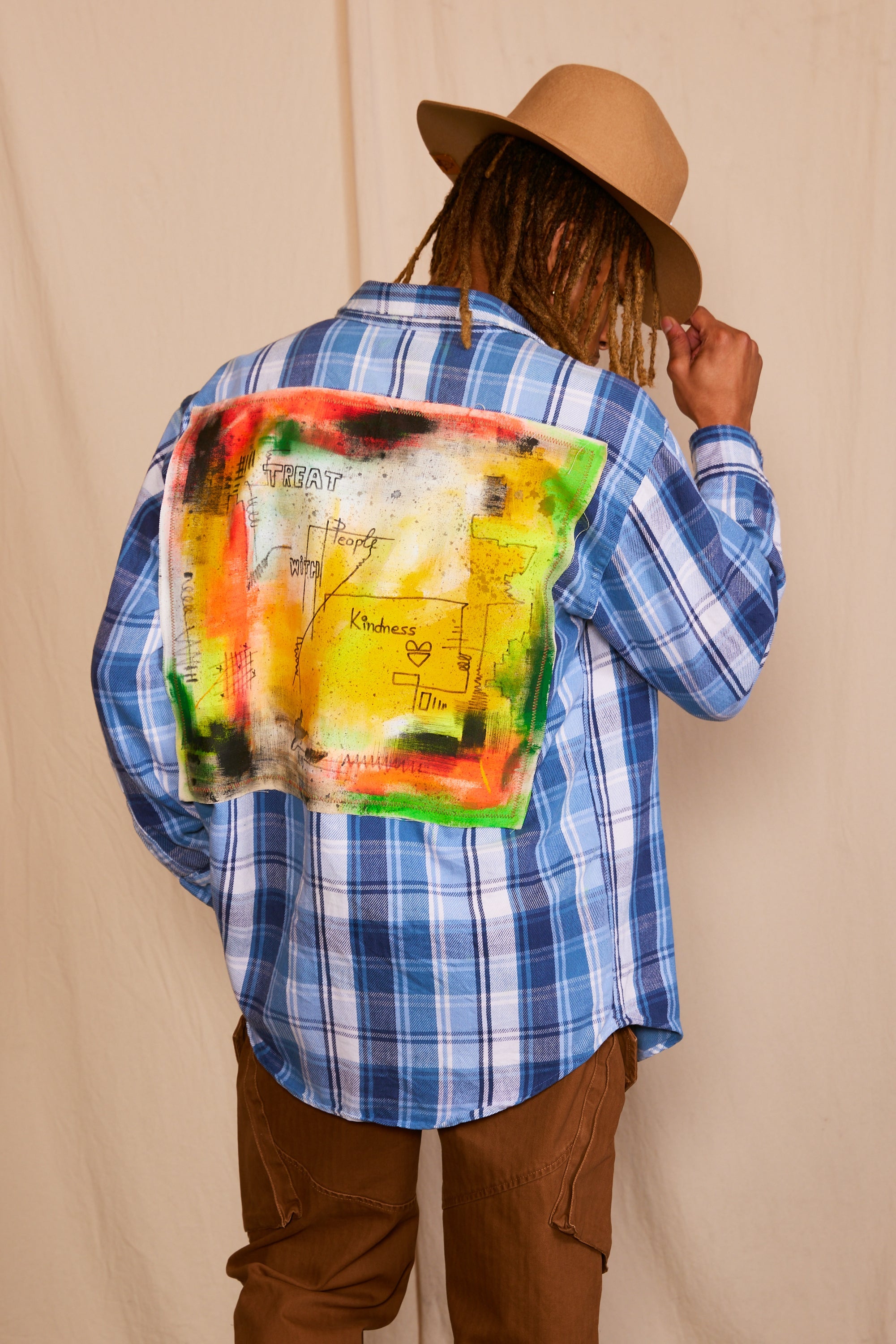 Artisan Hand-Painted Kindness Canvas Plaid Shirt