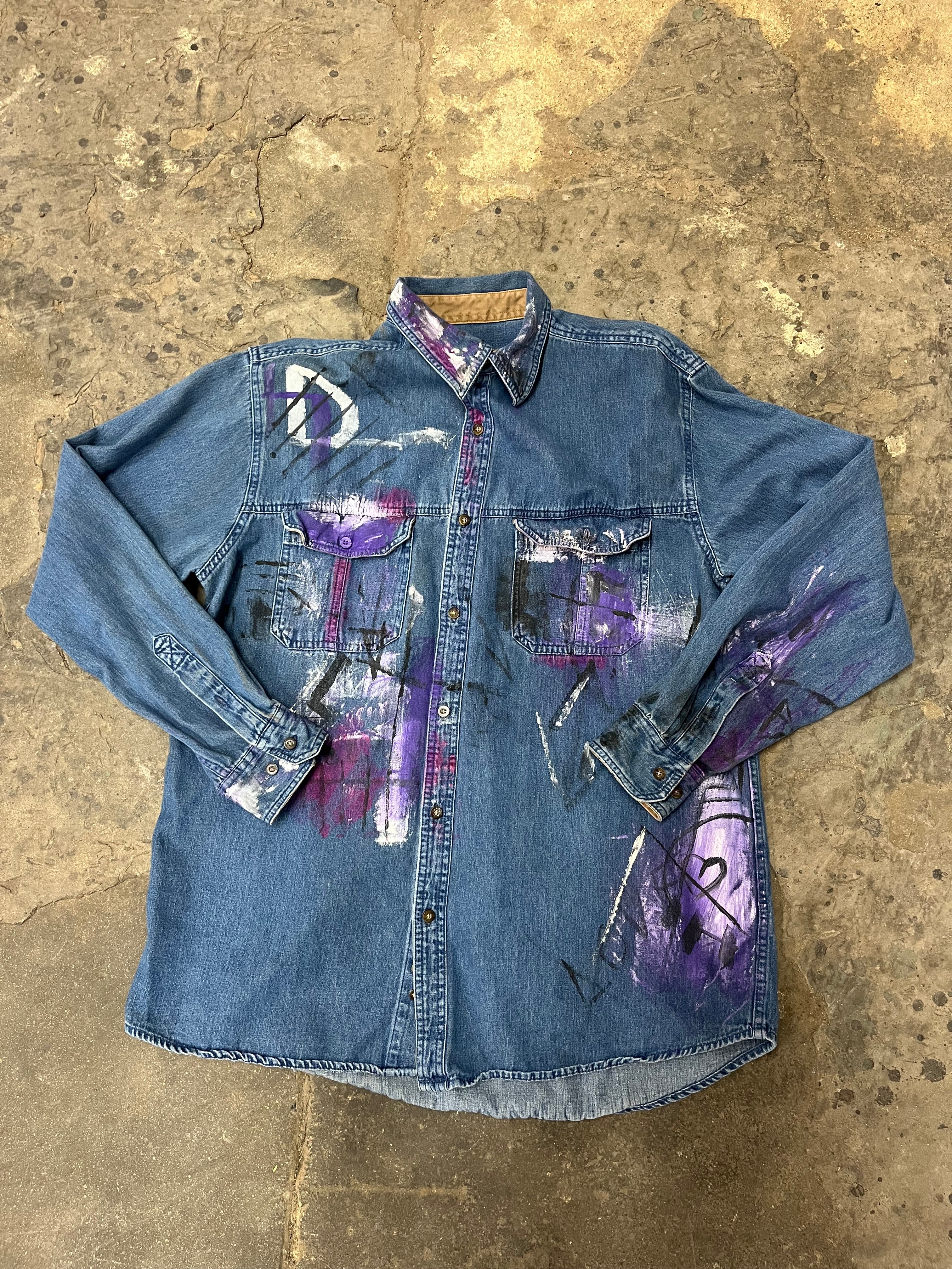 Artisan Hand-Painted Midnight Muse Denim Shirt