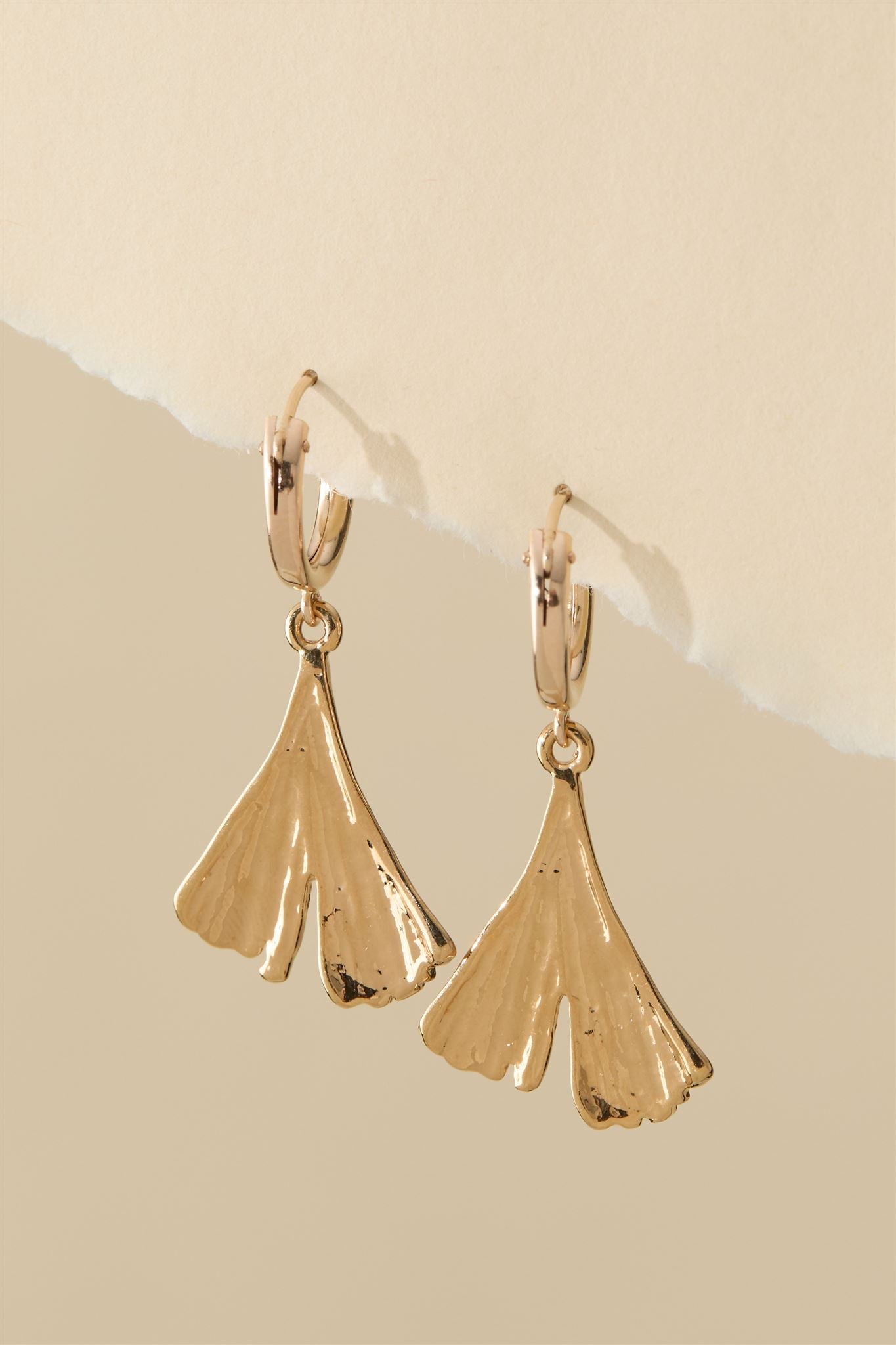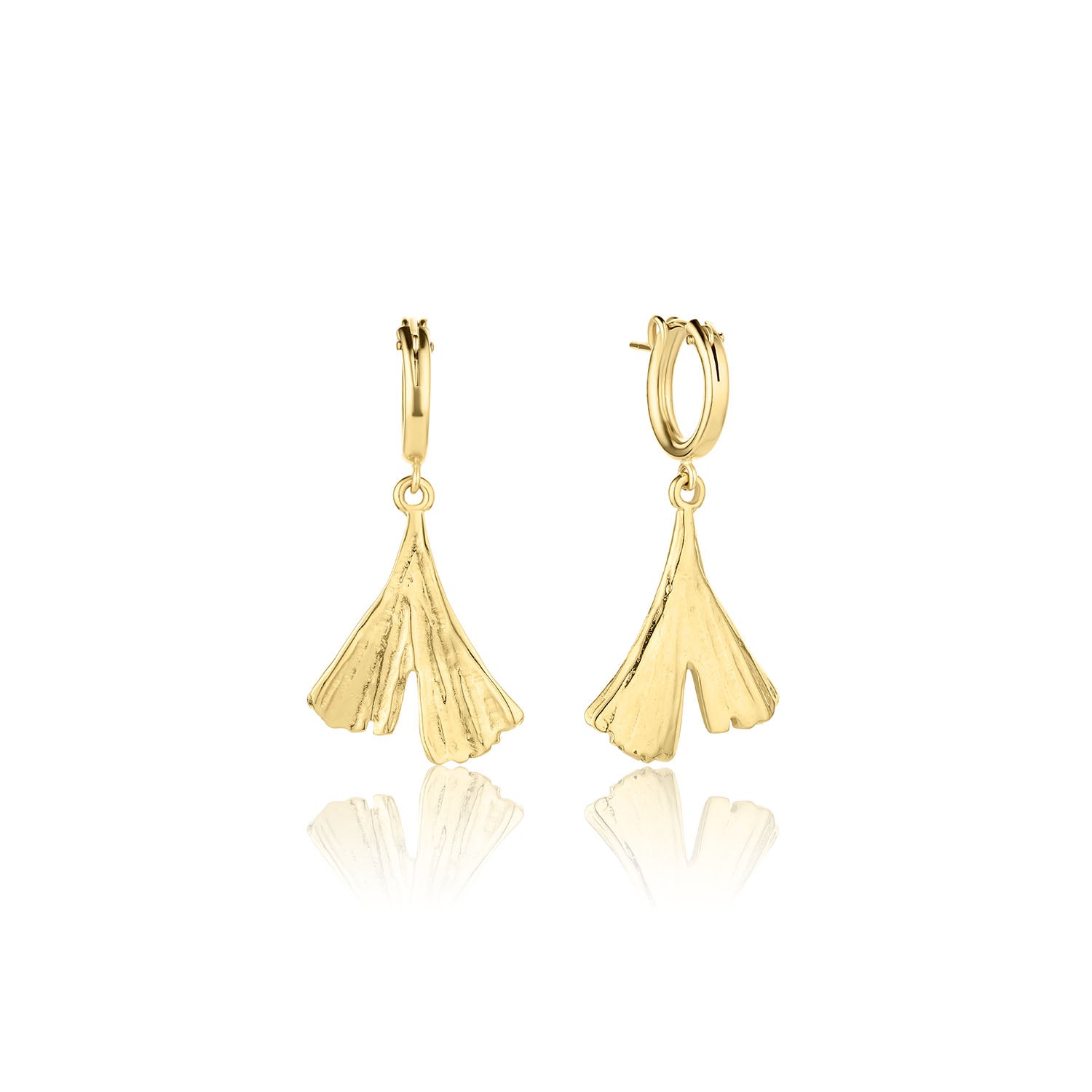 • 14k Gold Filled 13mm hoops with 24k Gold over Brass Gingko leaf pendants