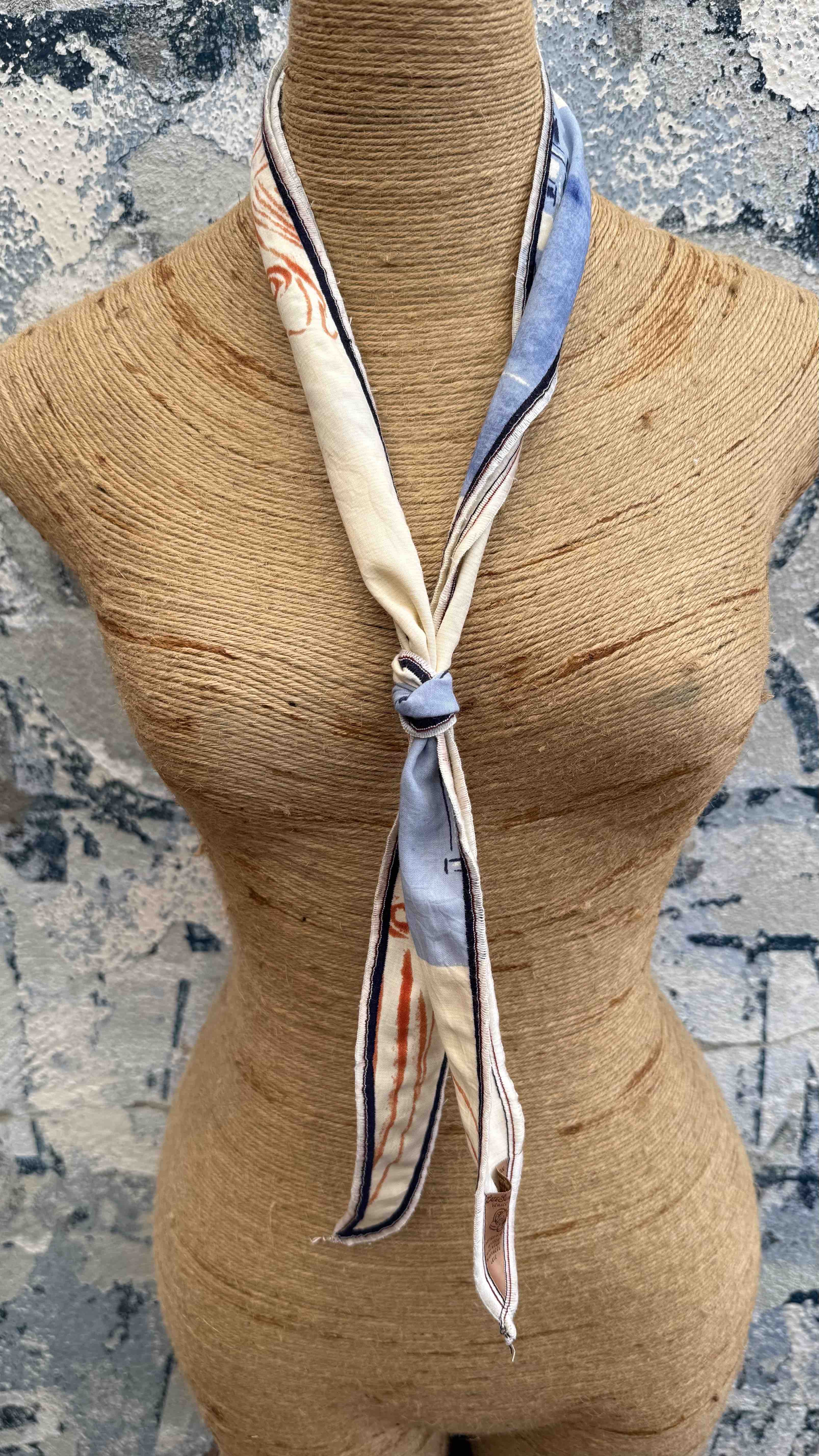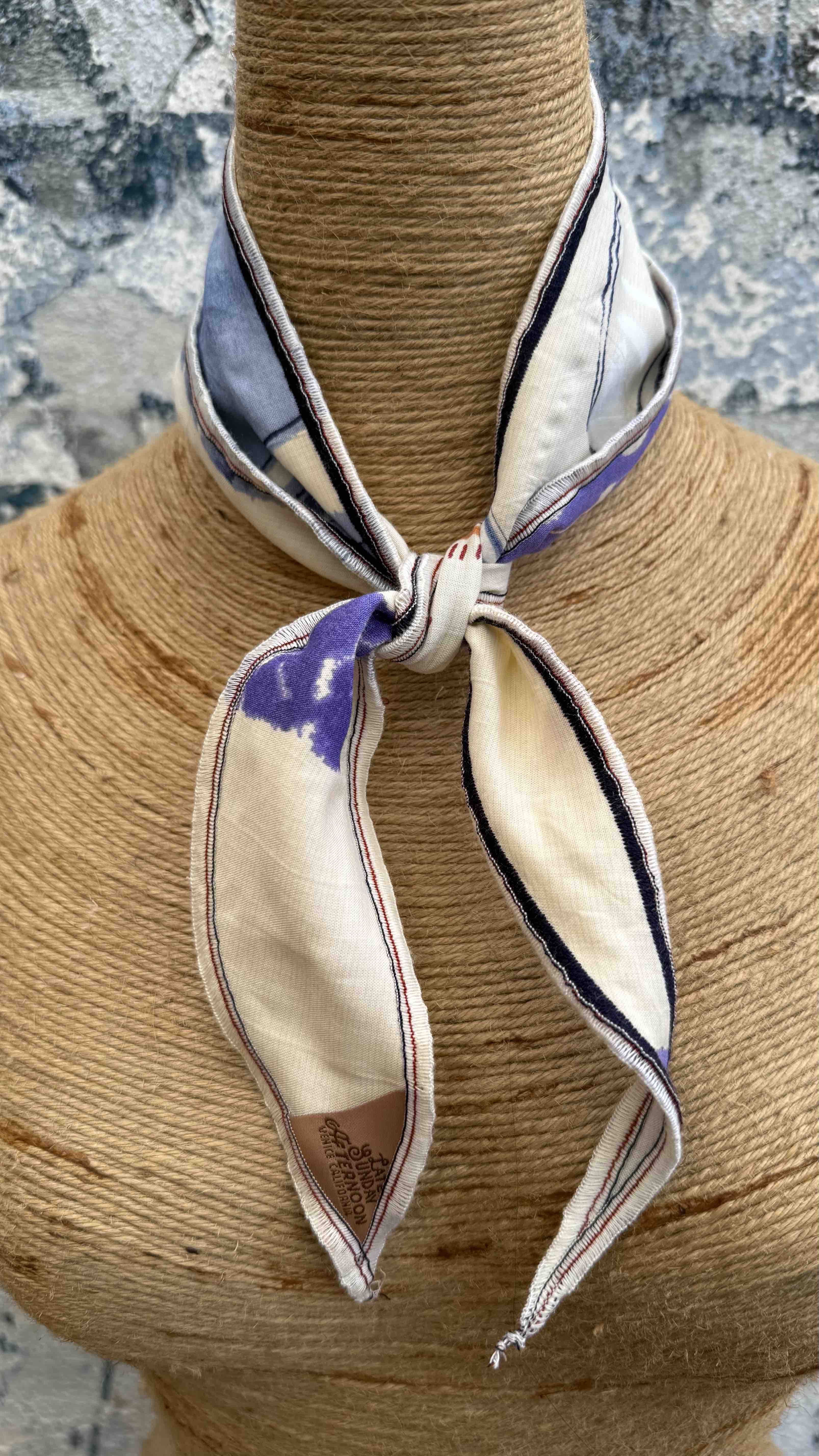 Crafted from hand-cut deadstock material, every piece is a one-of-a-kind masterpiece. No two scarves are ever exactly alike, ensuring that each one carries a distinct piece of the seaside within its folds. Lightweight yet expressive, the Cape Code Neck Scarf can be tied around your neck, hair, or bagβ€”adding a touch of nautical personality to any look.