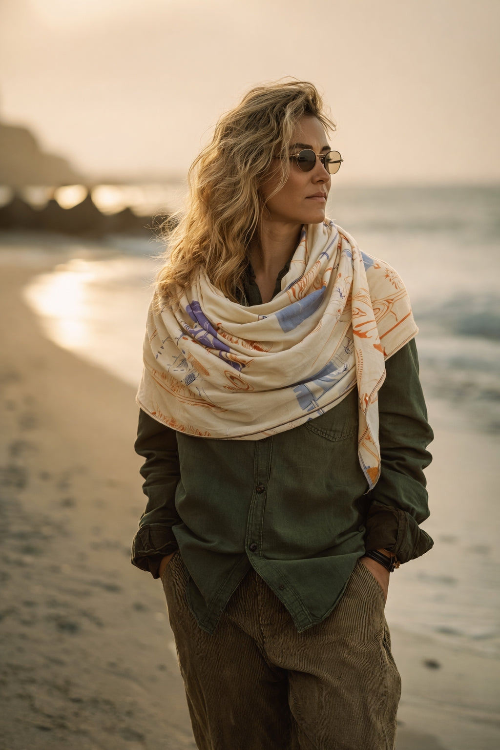 Featuring painted nautical motifs, the Cape Cod Scarf comes alive when draped or layered, creating small, delightful bursts of color and coastal storytelling in your outfit. Soft and versatile, it’s ideal for travel, casual outings, or simply adding a breezy, sophisticated touch to your look.