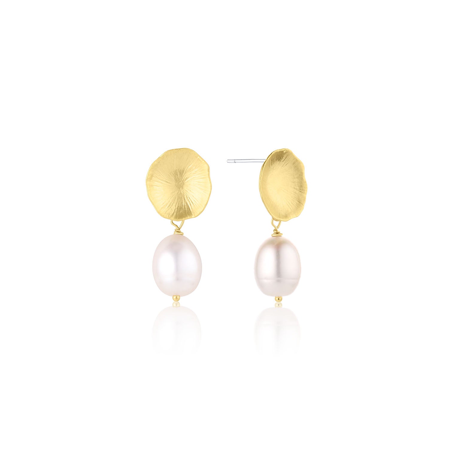 • 16k Gold over Brass lotus earrings + Freshwater Pearls