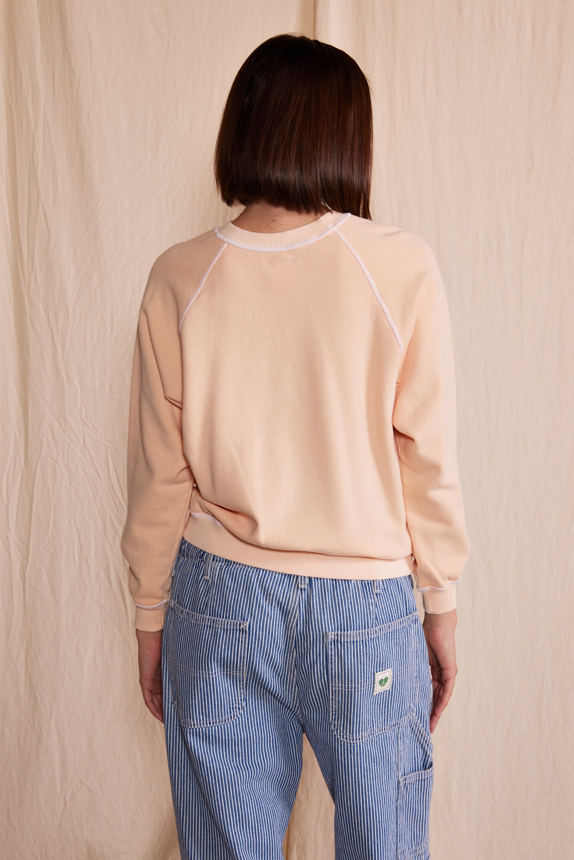 Meet the Essential Pullover, a timeless piece crafted from 100% organic cotton. This crew neck sweatshirt seamlessly blends comfort and sustainability, featuring a soft peach hue and relaxed fit. Ethically made and upcycled for minimal environmental impact, it's the perfect addition to any conscientious wardrobe.