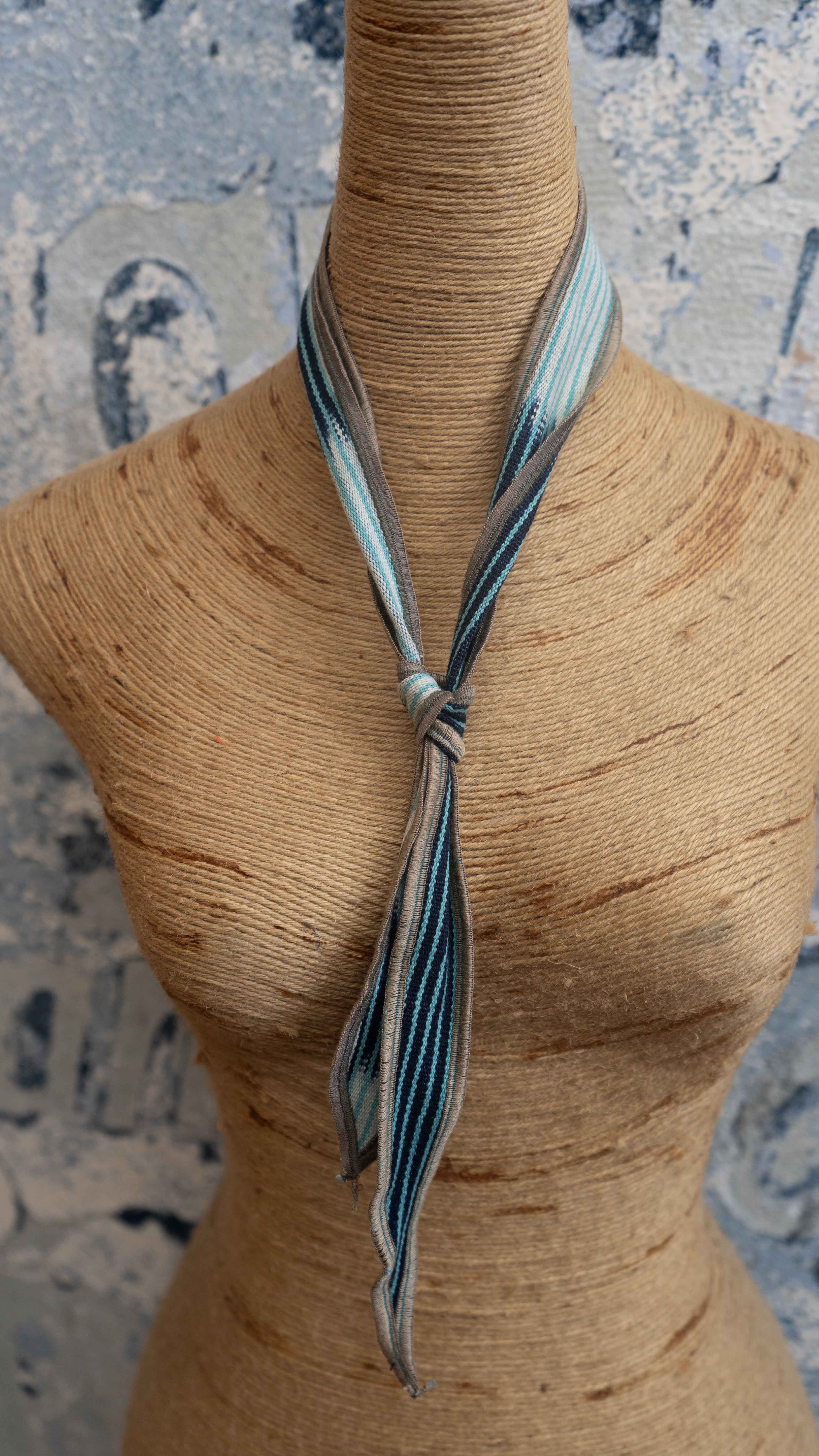 Introducing the Glacier Bay Neck Scarf, crafted from a vintage blanket and transformed into a stylish accessory with a touch of African charm. Keep warm and make a statement with this unique scarf.