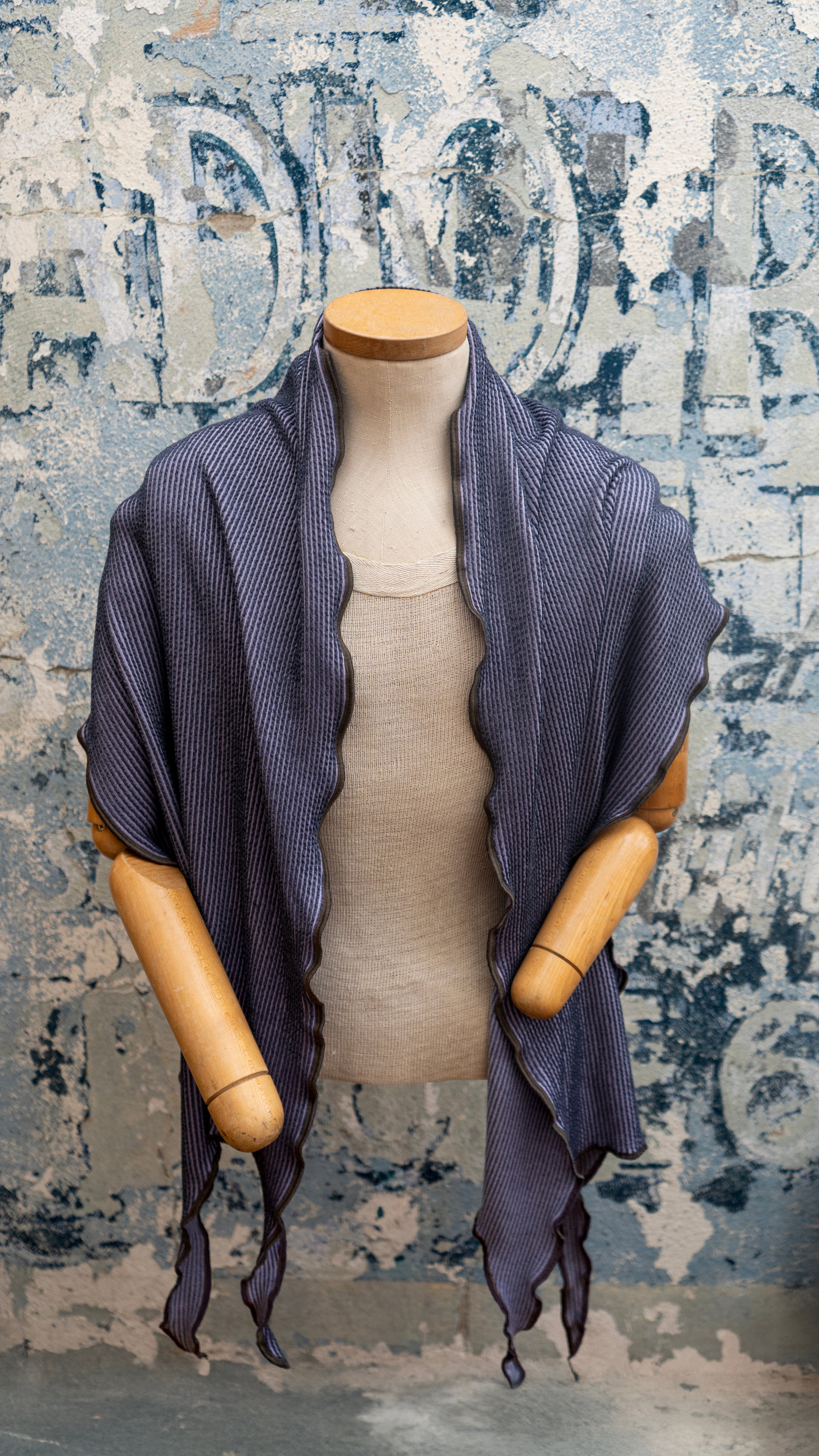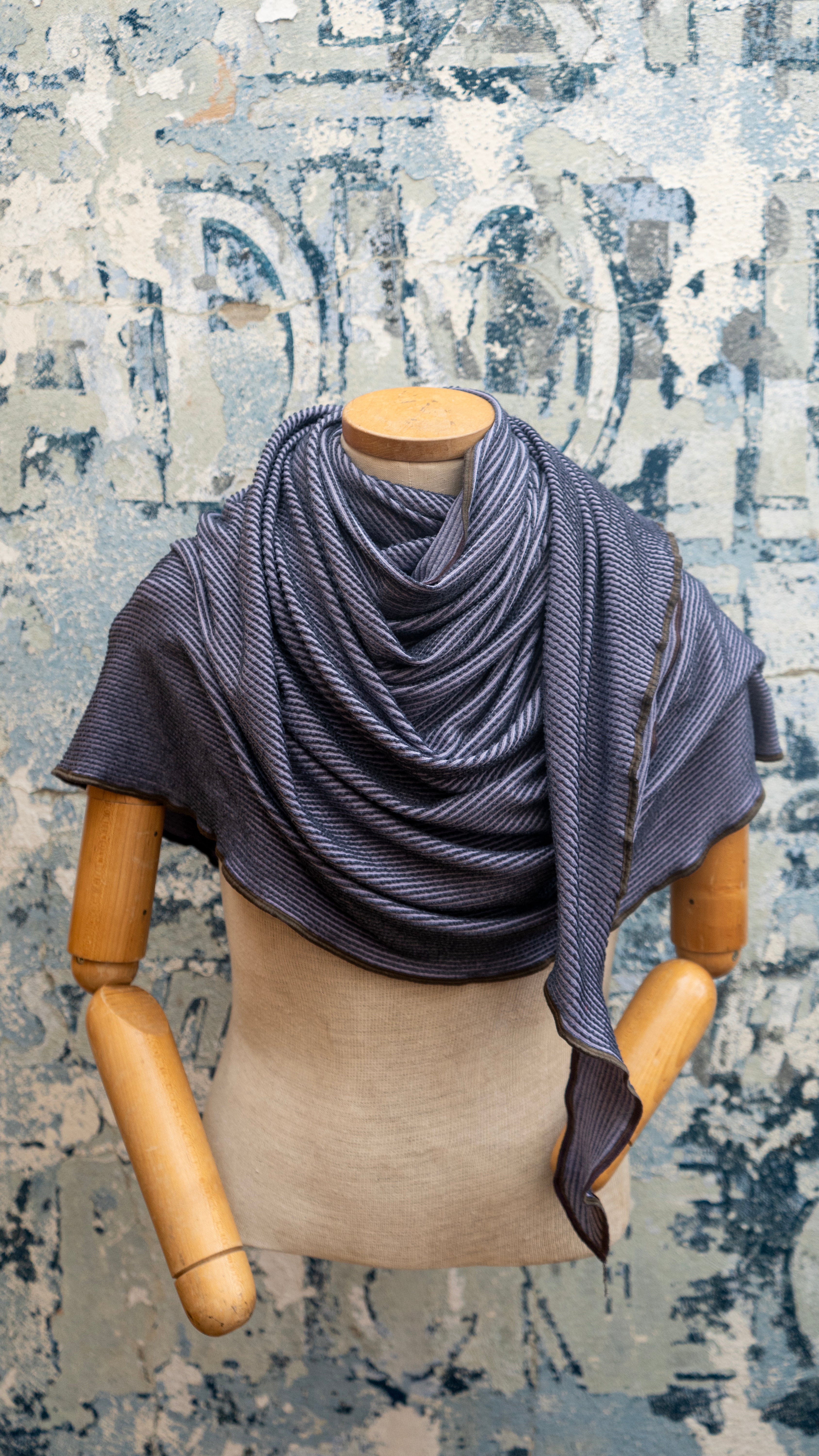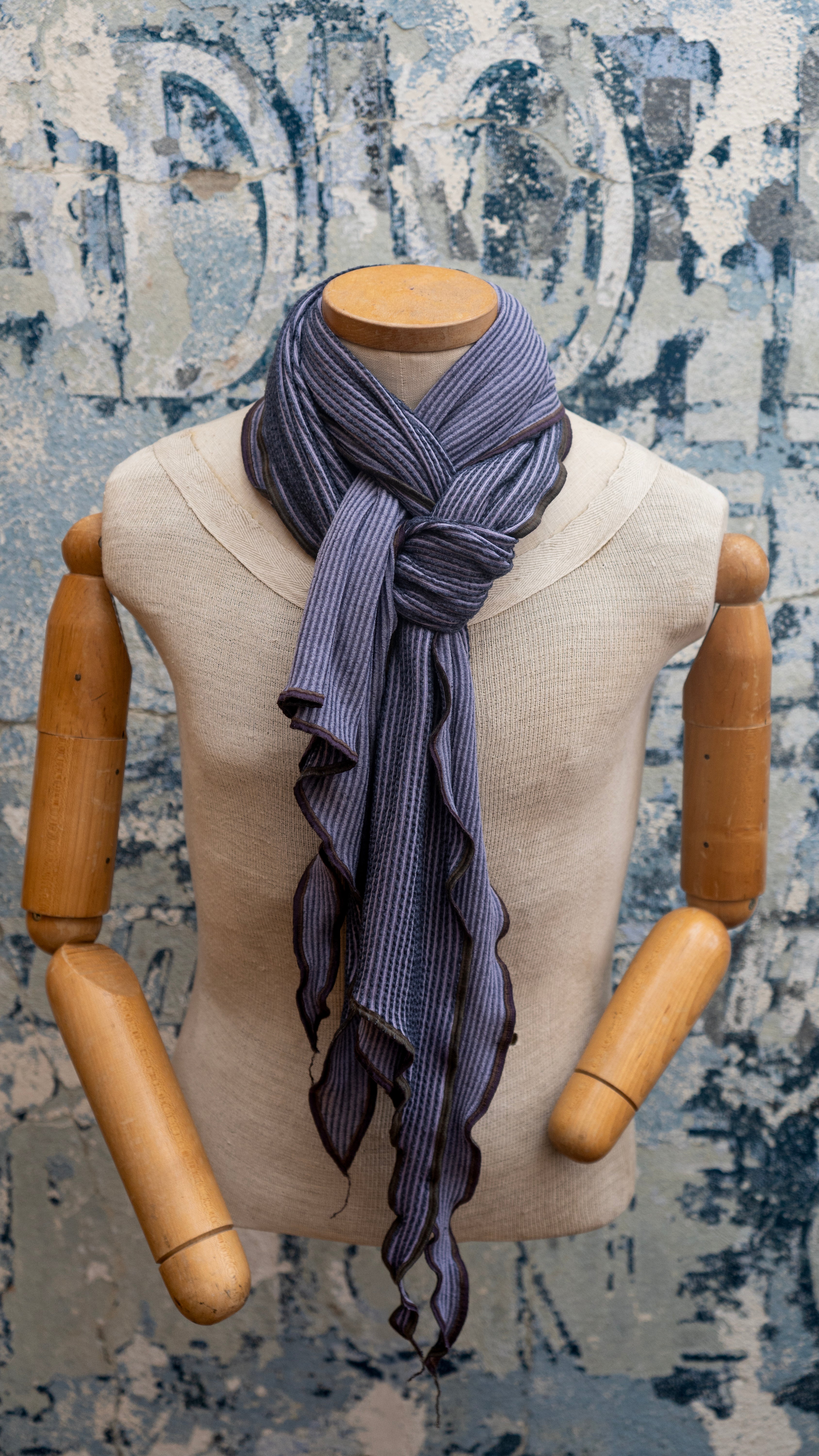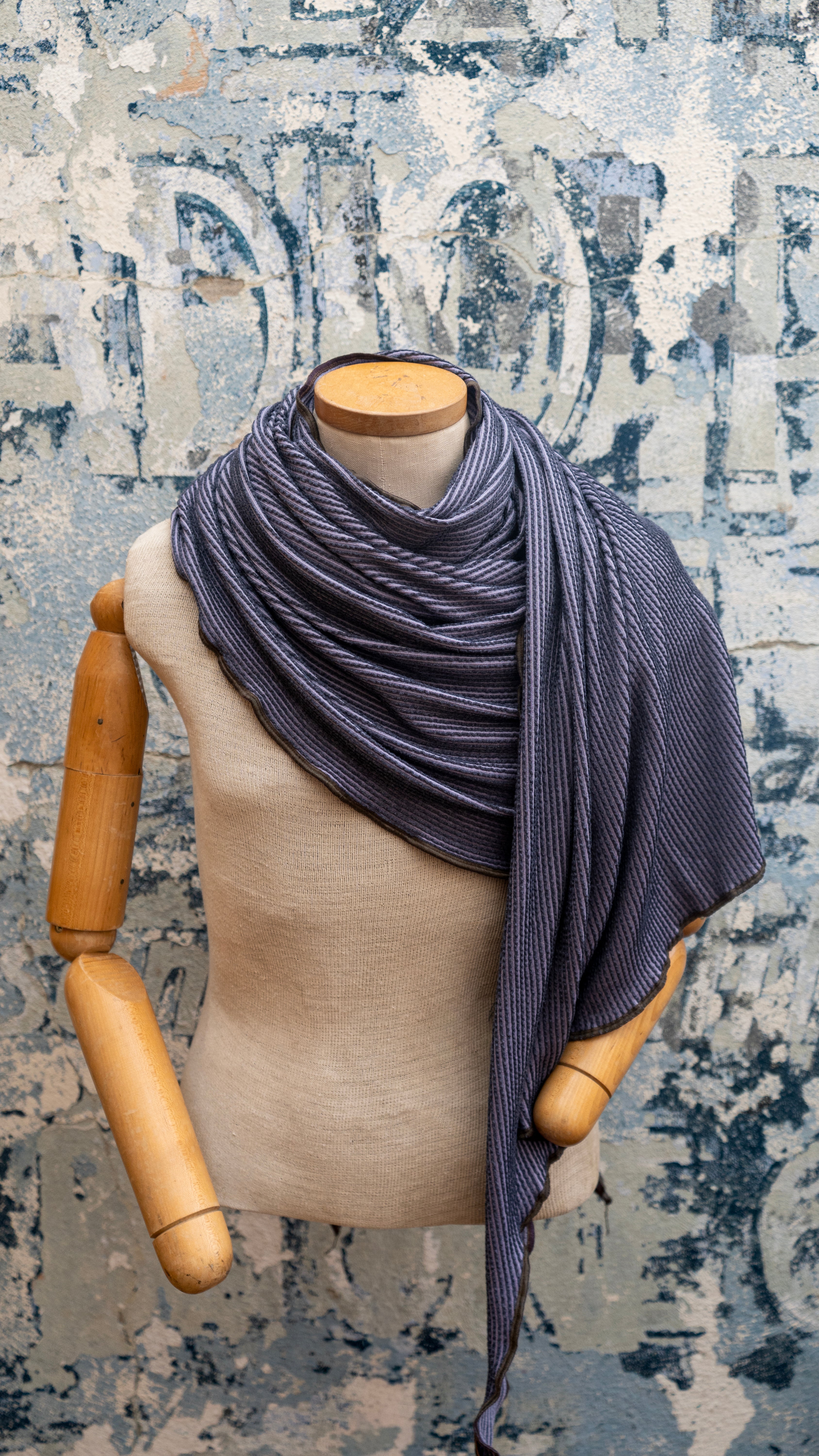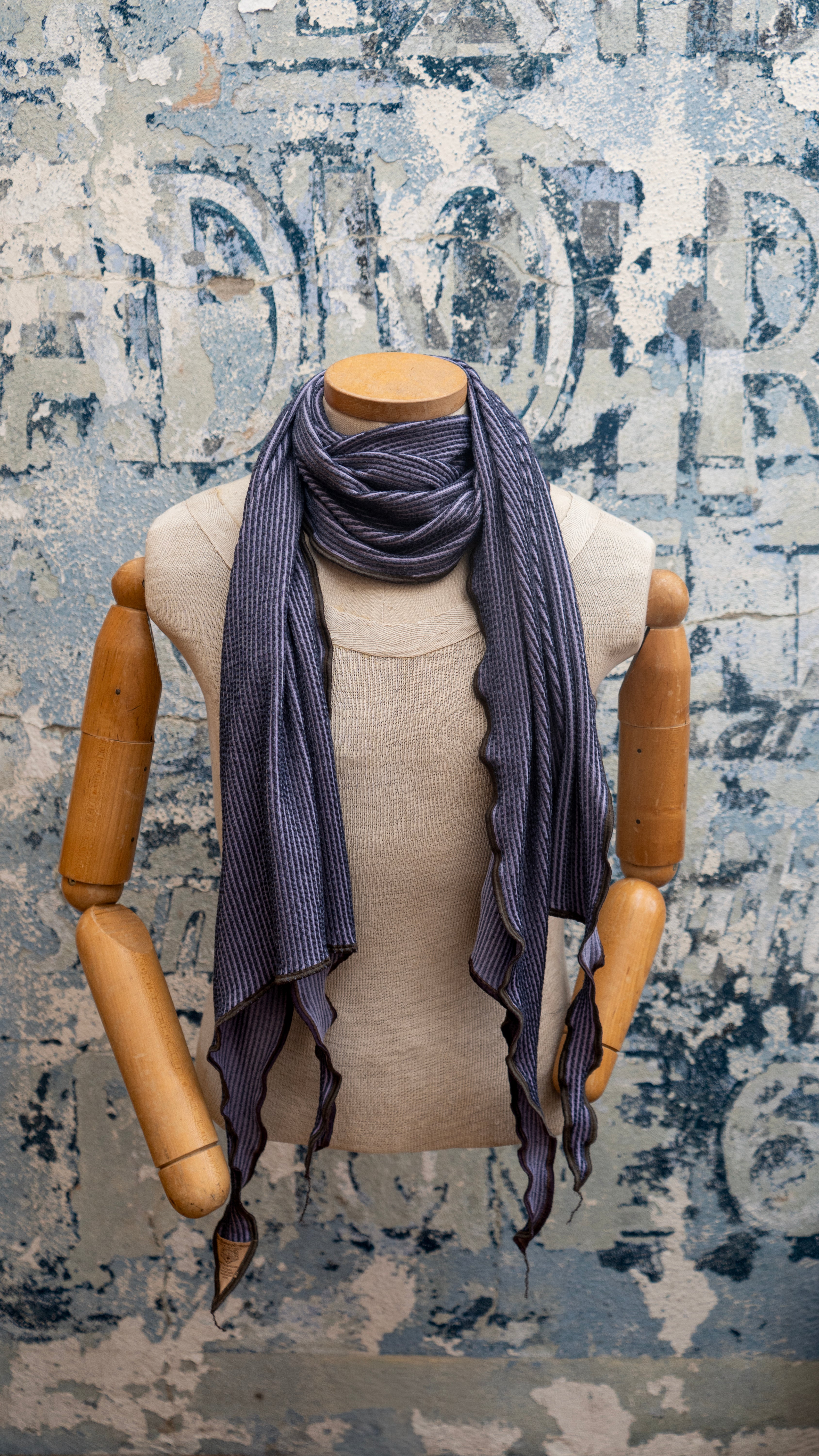 Each piece is carefully hand-cut, ensuring every scarf is completely unique. Whether styled around the neck, draped over the shoulders, or layered over outerwear, the distinctive ribbed texture adds depth and refined sophistication to your look.