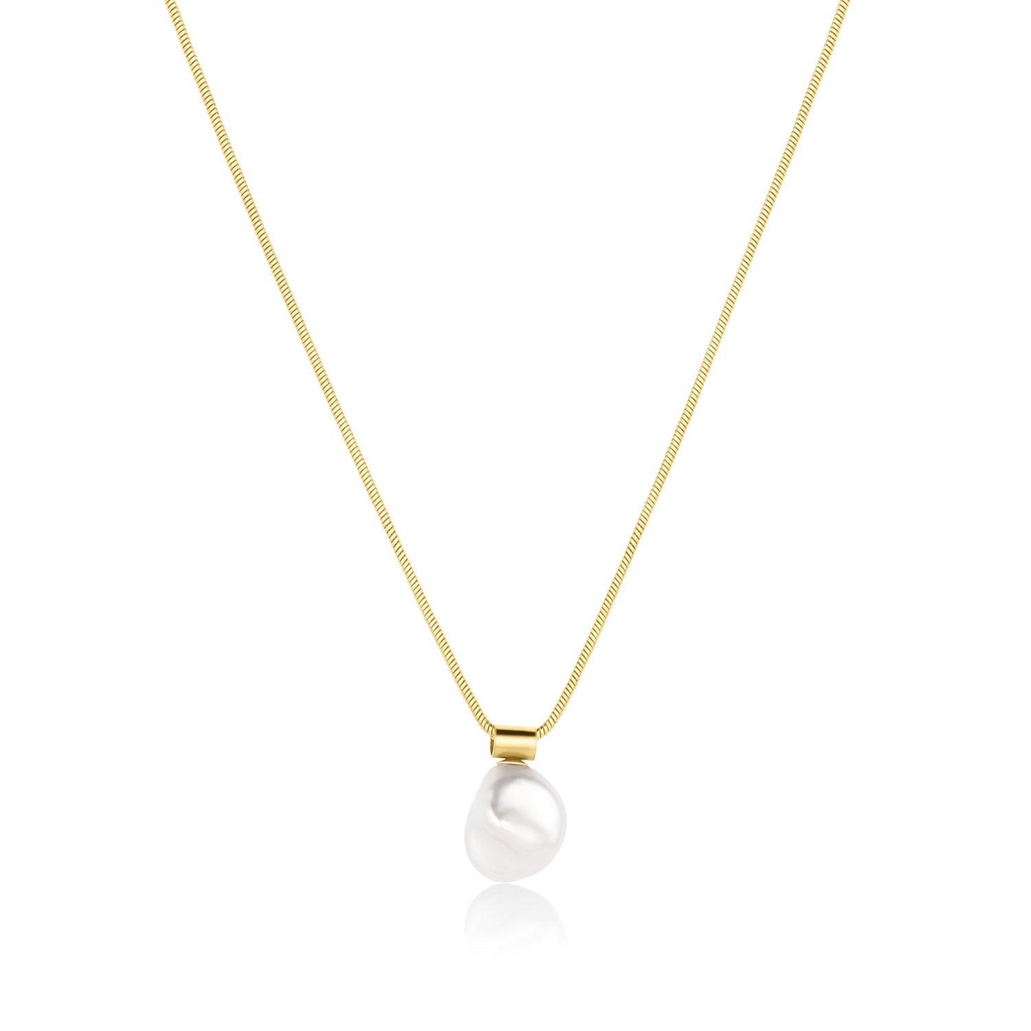 • 18k Gold over Brass snake chain with top drilled Freshwater Pearl