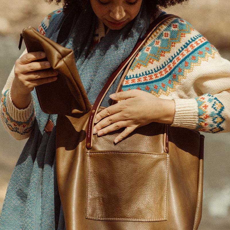 Our Petite Carryall Tote is a simple, classic design to carry your essentials. Just like our Classic Carryall Tote, only scaled down to a smaller silhouette. The leather is sturdy and durable, and with minimal hardware, this bag is very lightweight. This tote can haul a laptop, folders and more.
