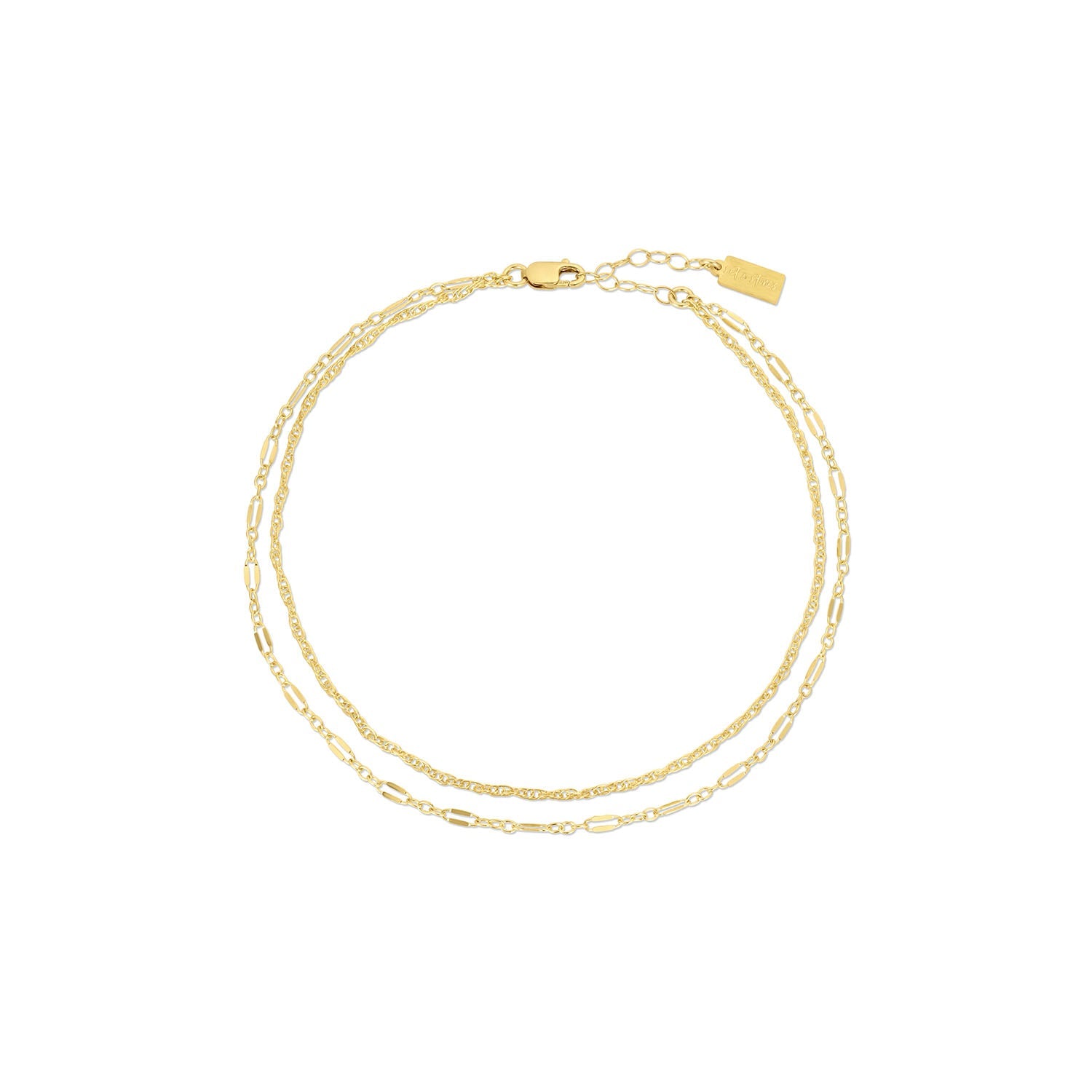 • 14k Gold Filled double draped rope and dapped chain anklet