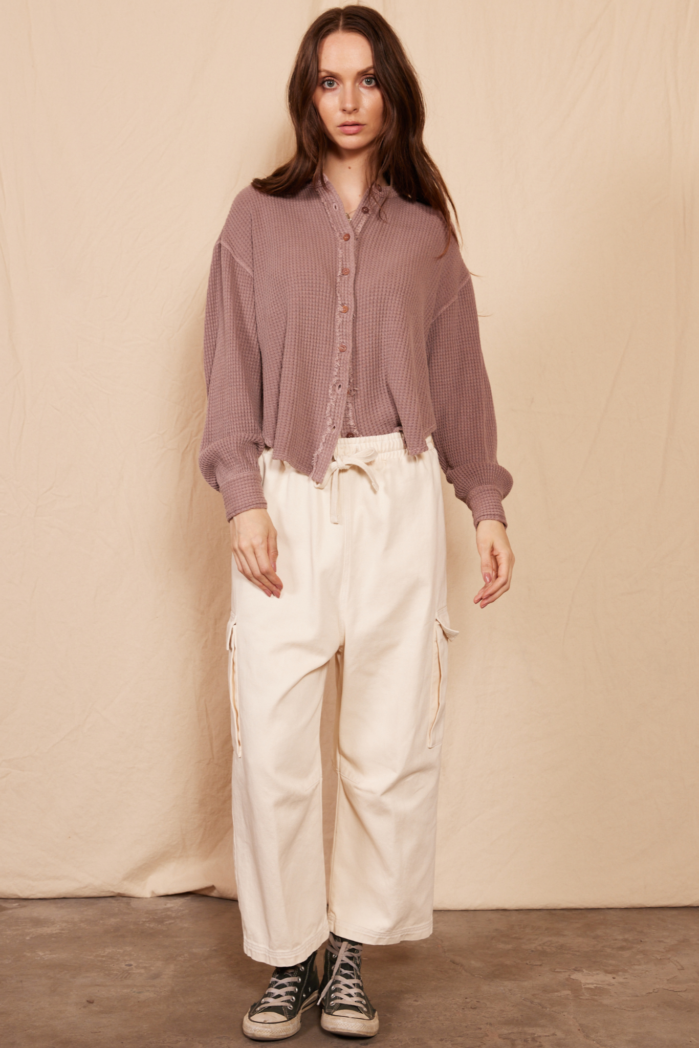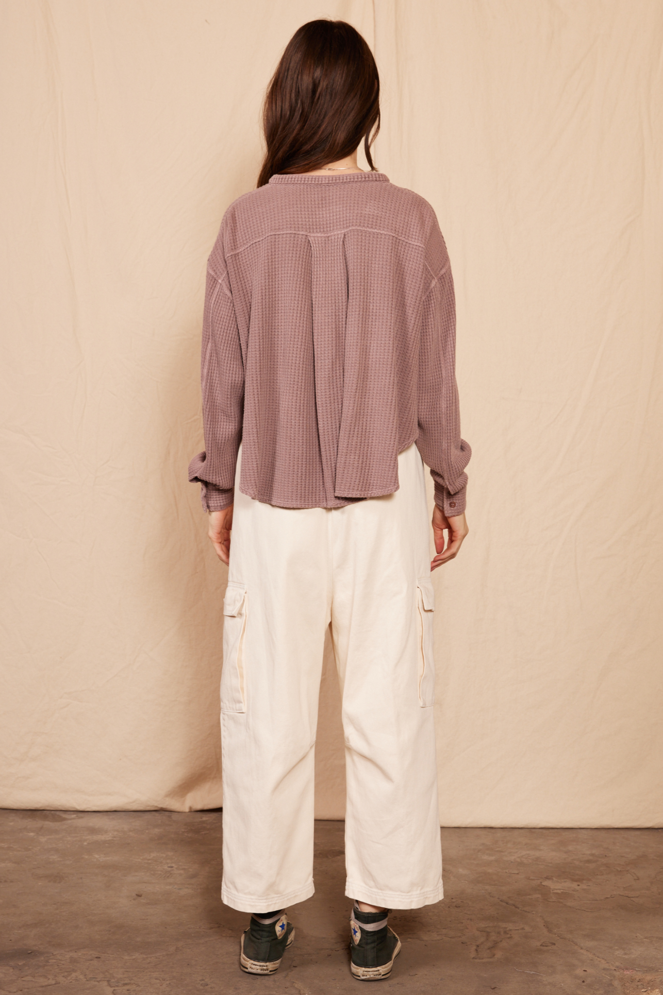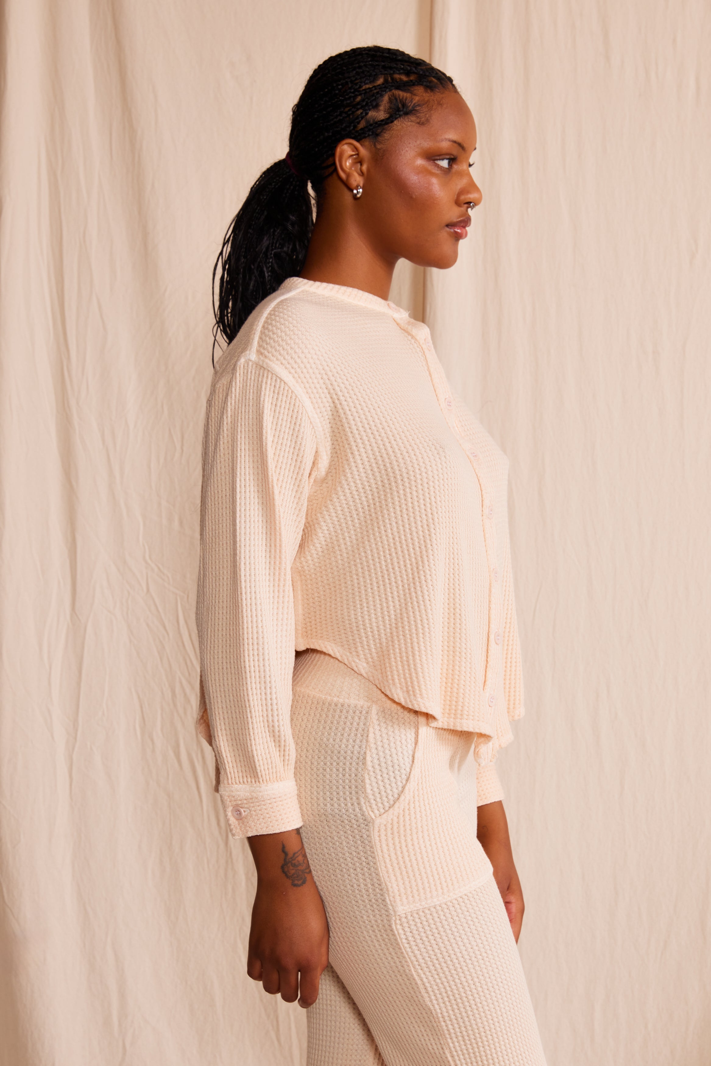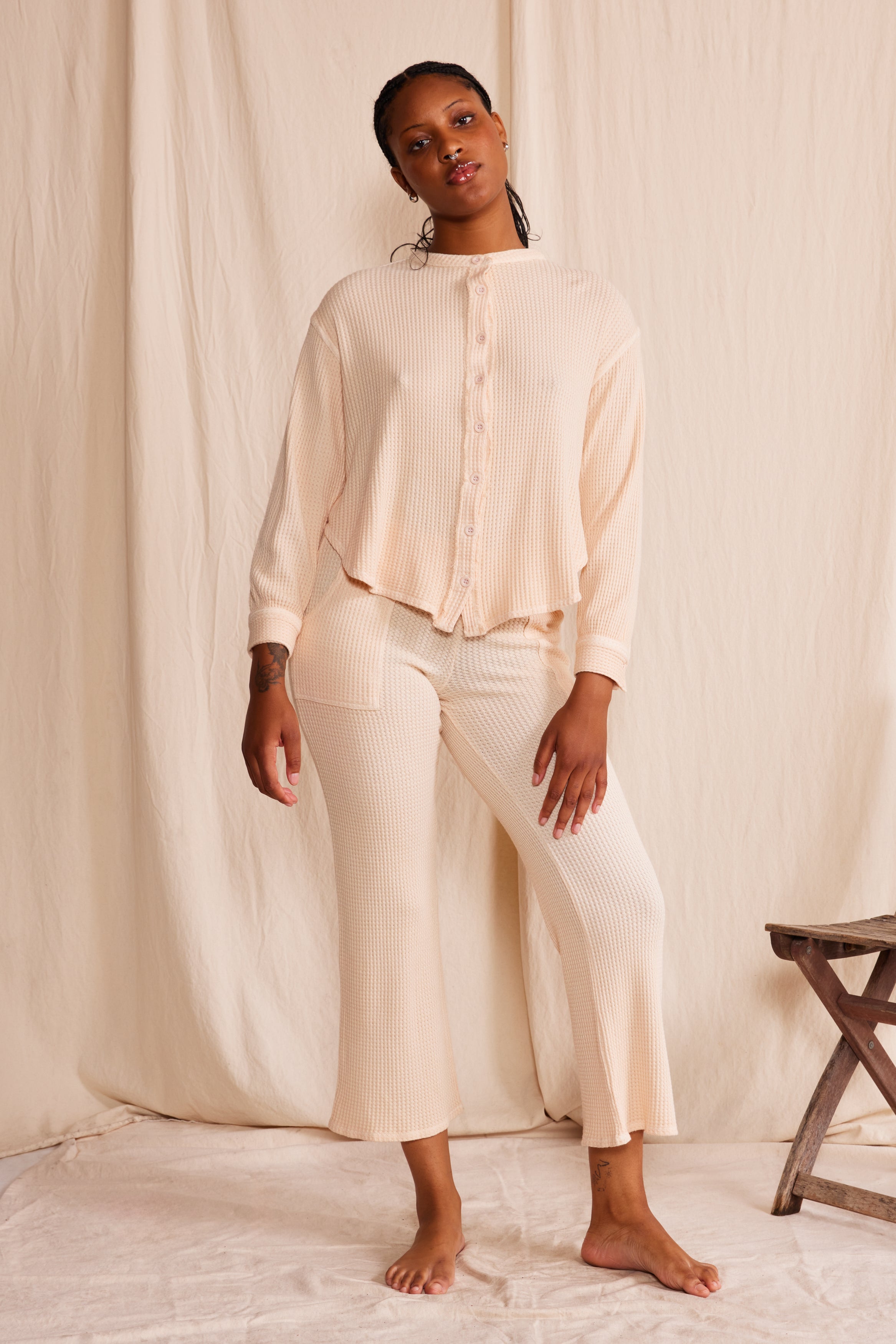 Embrace the epitome of sustainable luxury with our Quinn Waffle Top. Made from 98% hemp and 2% spandex, this top offers unparalleled comfort with a relaxed, chic silhouette. The breathable fabric, coupled with a unique button-down design and subtle asymmetry, speaks to the fashion-forward, eco-conscious individual. Ethically crafted and upcycled, this piece is perfect for those who prioritize both style and sustainability.