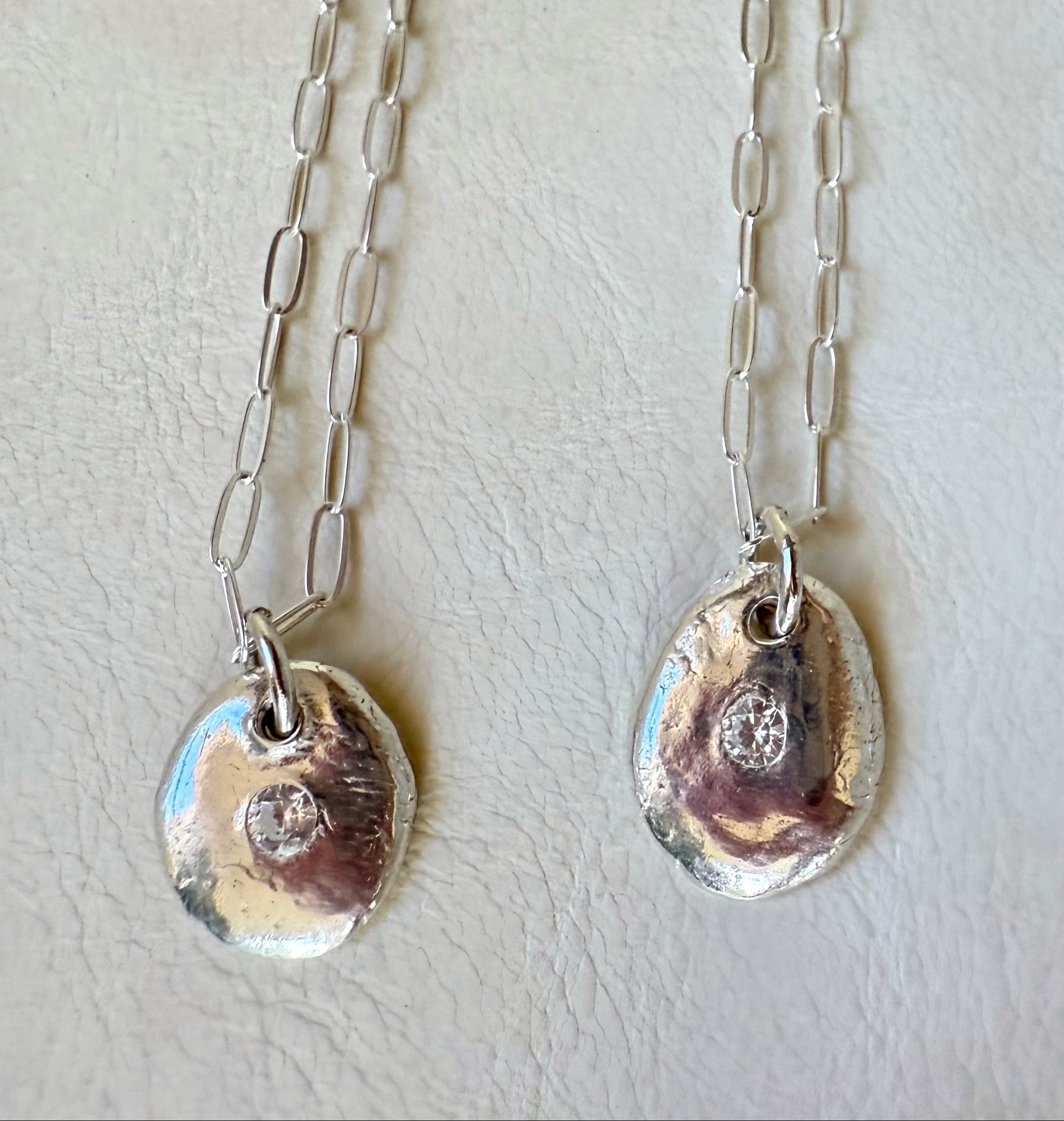Crafted by hand and ready to ship within 2-3 business days, this piece features a lustrous silver pendant with a sparkly cubic zirconia, suspended from a paperclip chain. The chain measures 18 inches with an additional 2-inch extender for customizable length and versatile styling options.