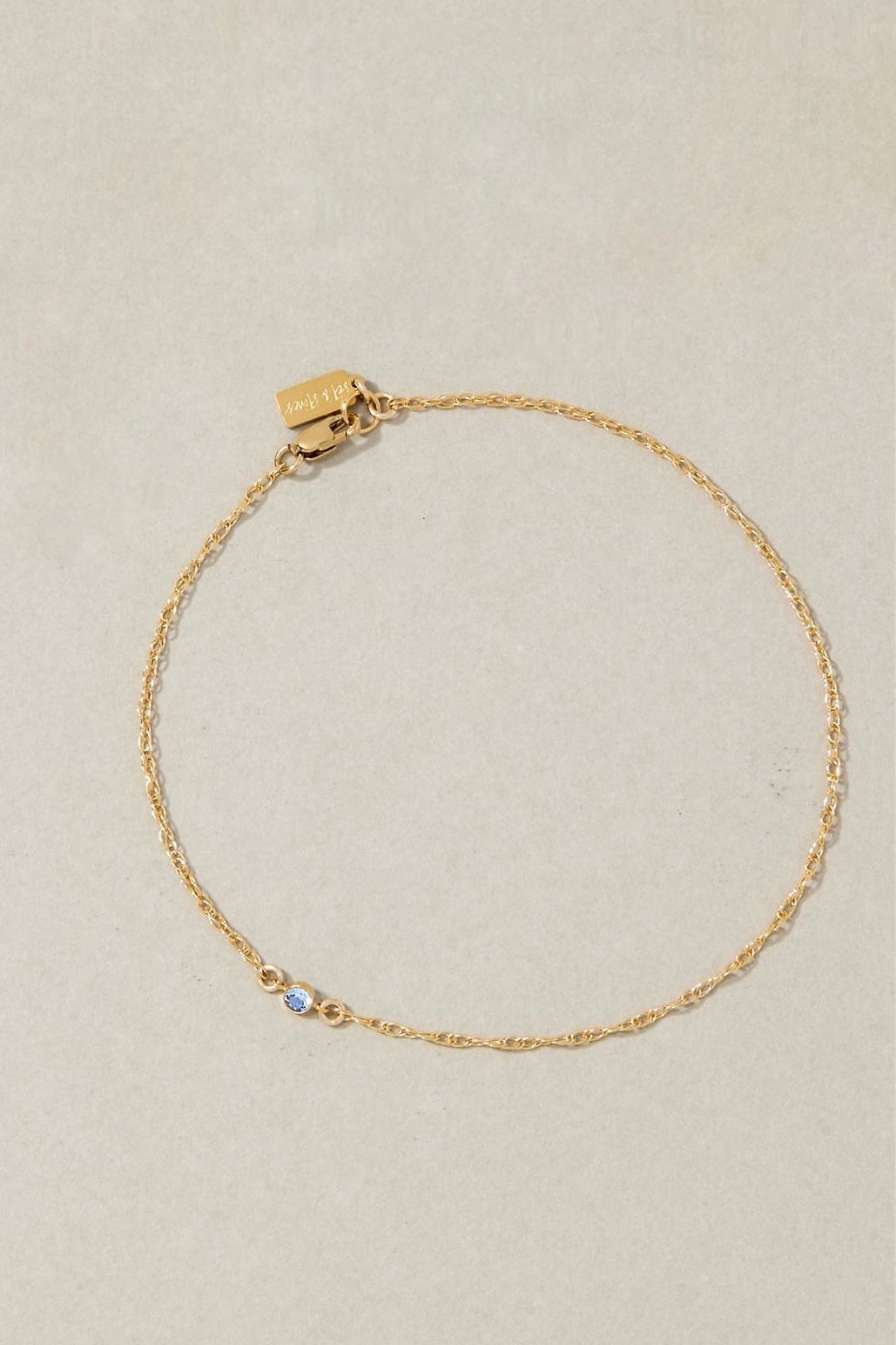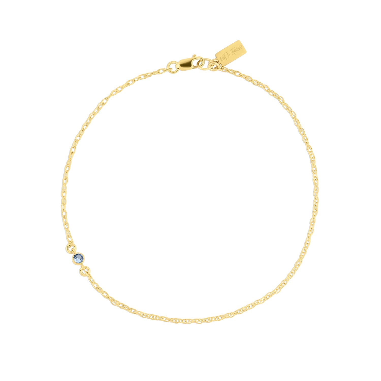 • 14k Gold Filled chain and 3mm bezel set “something blue” Cubic Zirconia connector