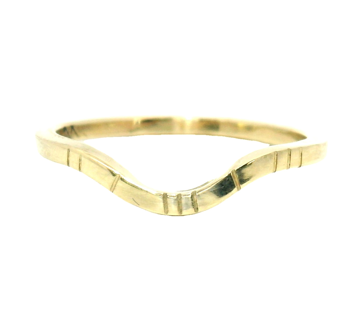 A beautiful band featuring a subtle curve that can should match most prong set solitaire rings. The signature YITM carved grooves are organically placed around the band to add texture and subtle dimension. This medium Arc measures 1.5 mm x 1.5 mm square. A similar ring is ready to ship in a size 6 and can be resized up or down within 3 sizes. A custom band in any size or metal color can also be made just for you.Β Β